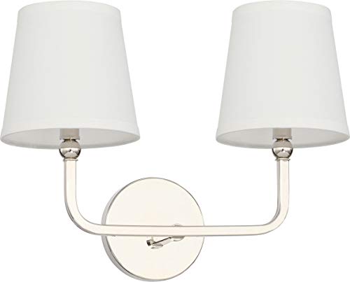 Professional reviews from industry experts Capital Lighting 119321PN-674 Dawson Decorative White Fabric Stay-Straight Shades Bath Vanity Wall Mount, 2-Light 120 Total Watts, 12H x 16W, Polished Nickel