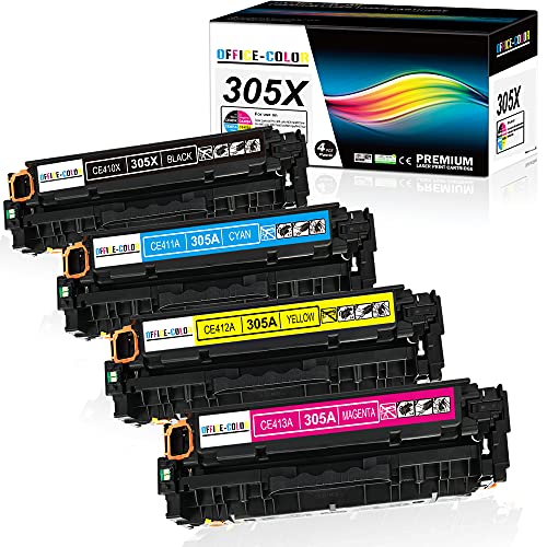 ebay OFFICE COLOR Remanufactured Compatible HP 305A 305X CE410X High Yield Toner Cartridge for HP Laserjet Pro 400 Color M451dn M451nw M451dw MFP M475dw M475dn Pro 300 M375nw (Black, Cyan, Magenta, Yellow)